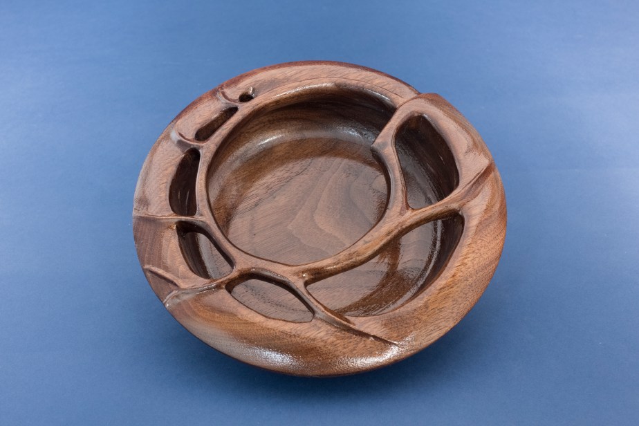 Walnut bowl with carved vines along the rim