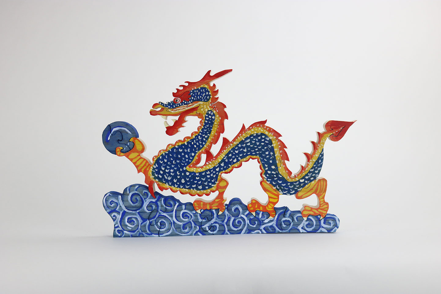 Chinese Dragon Puzzle Intarsia Chinese Dragon puzzle stained yellow and painted with acrylics. Related