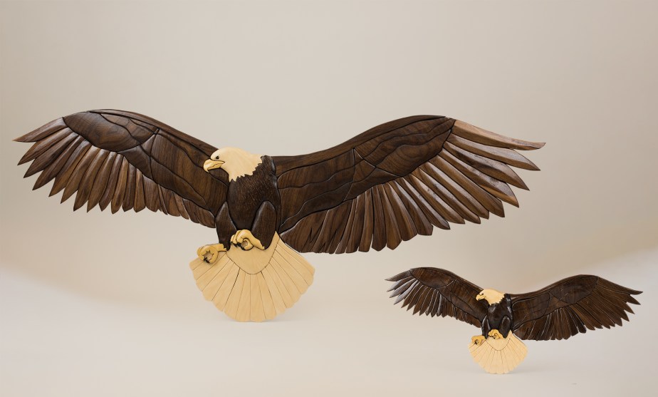Eagle Large and Small Intarsia Two eagles both with 92 pieces. Larger has a 50″ wingspan. Smaller is 24″. Pattern by Judy Gale Roberts. Related