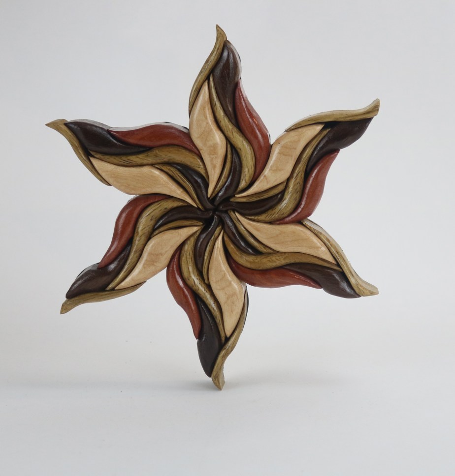 Wooden flower petals made from 42 pieces of scrap wood