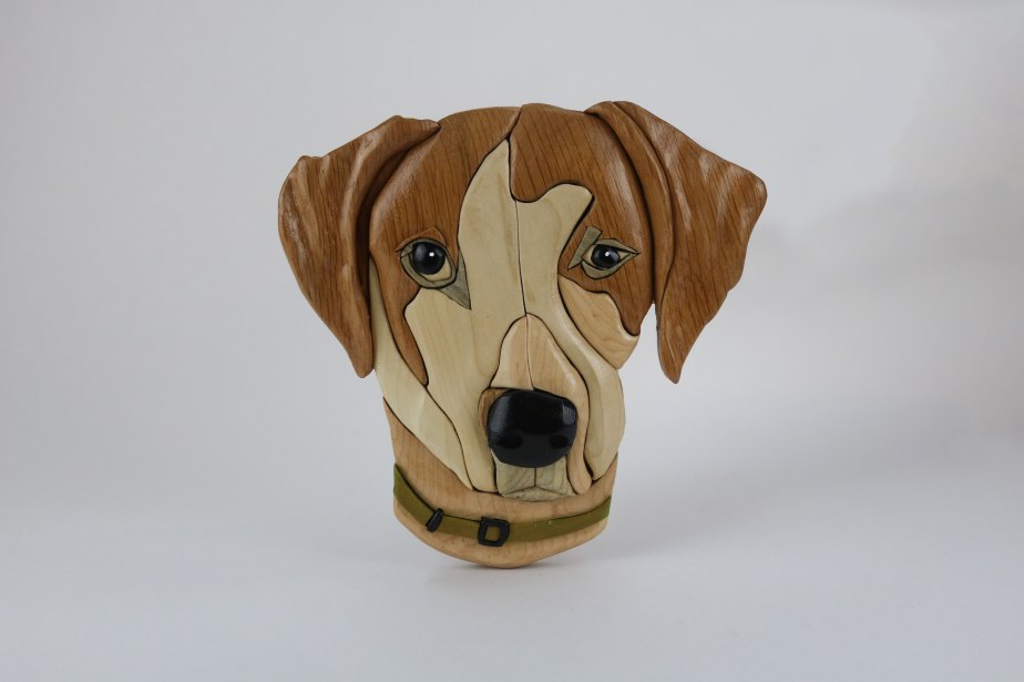 Intarsia of my niece’s dog Smoky. Made from a photo of the dog.
