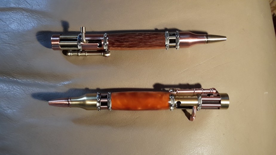 Two Steam Punk style pens made with Purpleheart and Acrylic